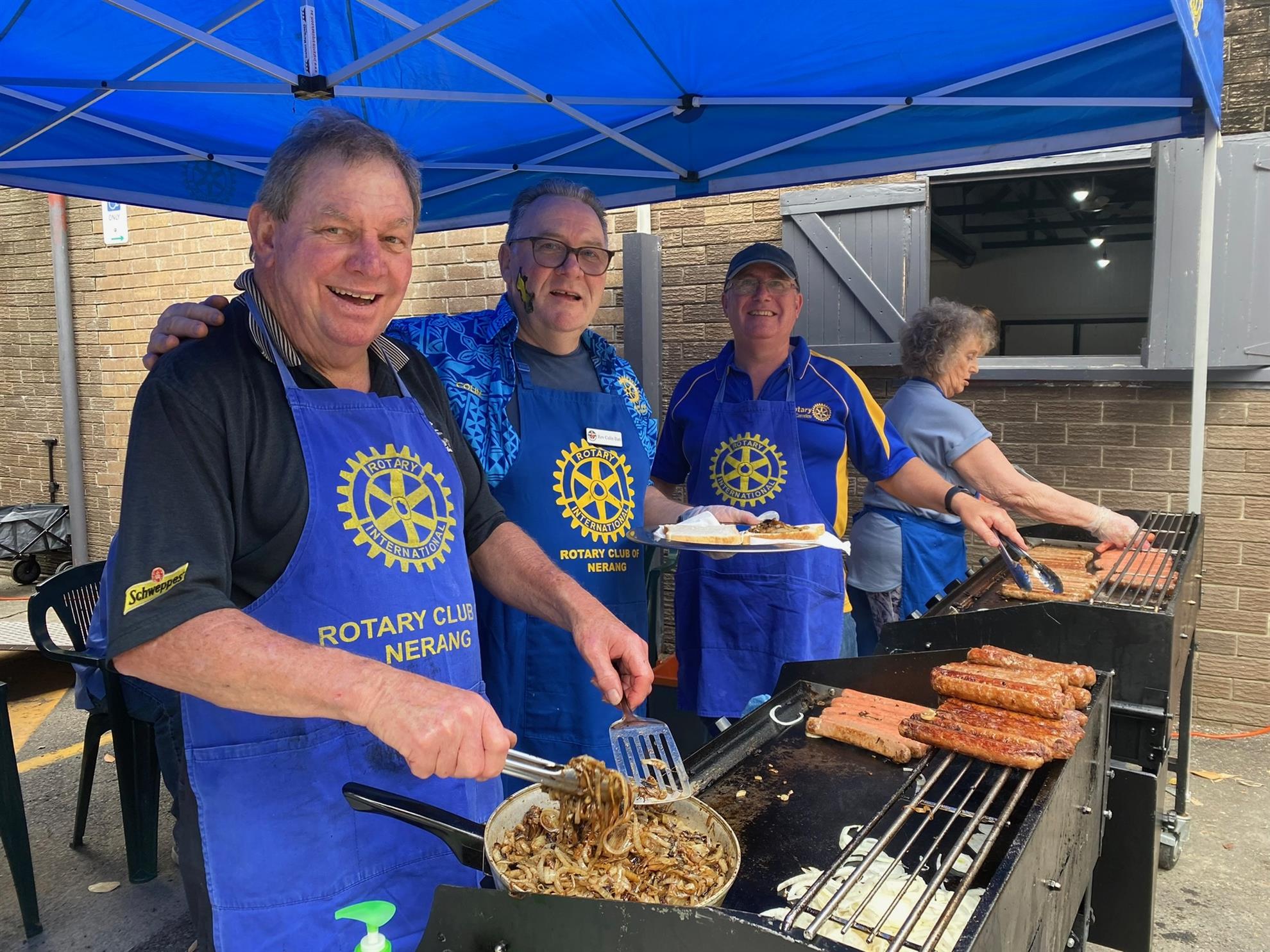 Rotarians cooked and served sausages Nerang Celebrates Christmas events